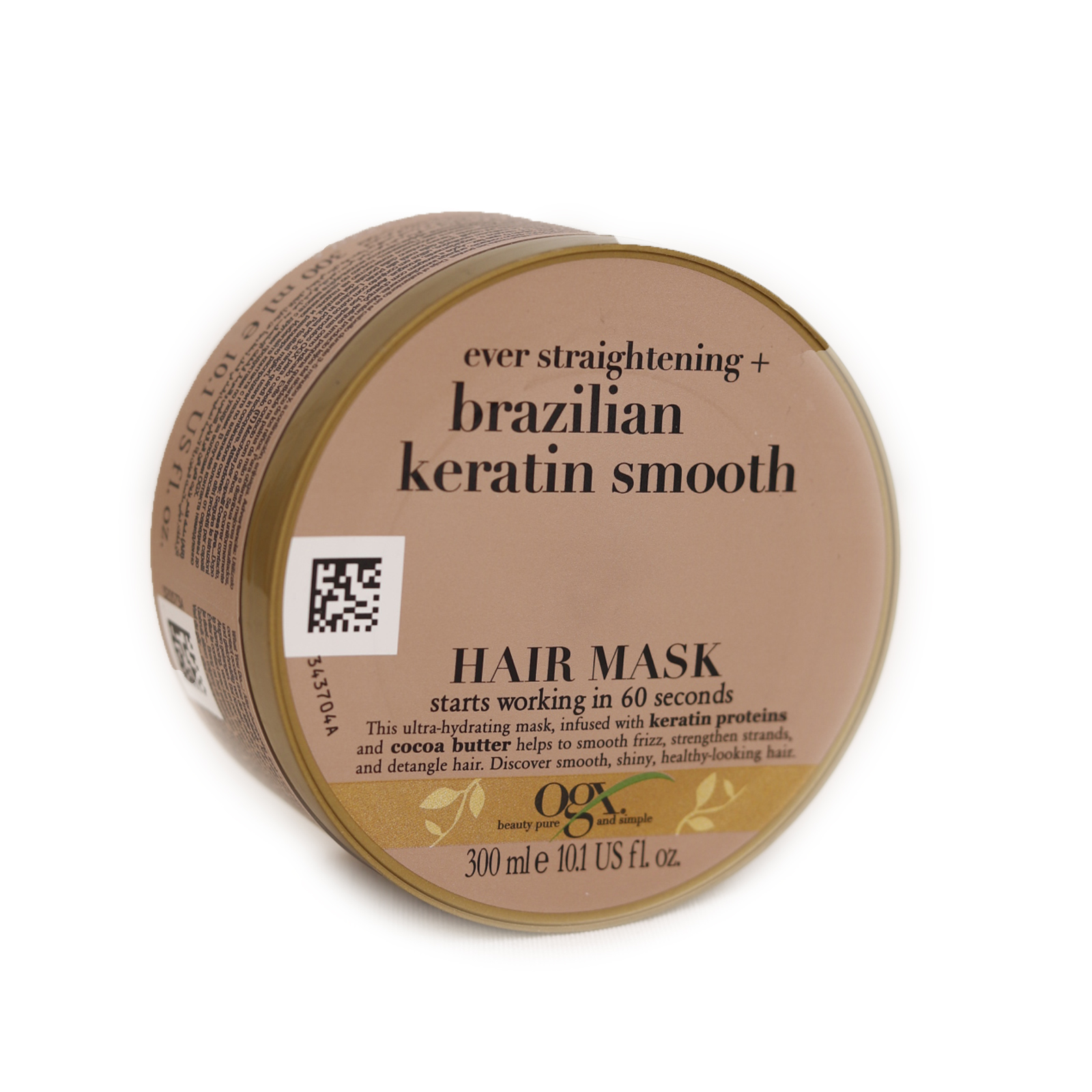 ماسک موی صاف کننده کراتین برزیلی او جی ایکس Ogx Brazilian Keratin دارای فرمول اثربخش عمقی و غنی از عصاره های طبیعی مغذی برای صاف کردن موهای وزدار و نامنظم می باشد. ماسک موی او جی ایکس حاوی کراتین برزیلی برای بازسازی ساختار موها و پر کردن منافذ و تخلخل های موهای نازک شده، وزدار و شکننده است، این ترکیب همچنین حاوی روغن آووکادو برای صاف کنندگی موها، کره کاکائو برای تغذیه عمقی و روغن نارگیل برای سلامتی بخشی و محافظت از تارهای مو می باشد. این ترکیب موهای وز و معلق در هوا را کاهش می دهد و محافظت کننده مو در برابر ابزار حرارتی حالت دهنده است.