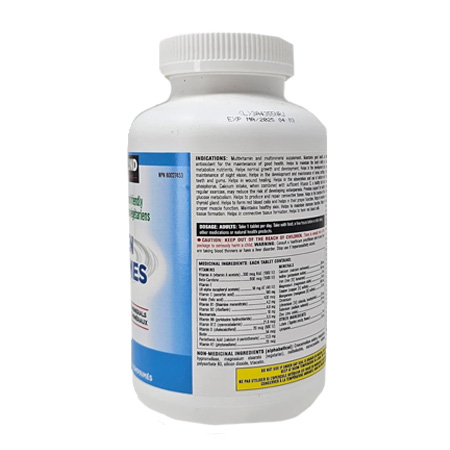 مواد تشکیل دهنده : دی کلسیم فسفات، اکسید منیزیم، کلرید پتاسیم، اسید اسکوربیک، سلولز، ژلاتین، dl-آلفا توکوفریل استات، فروس فومارات، کربنات کلسیم، سدیم کراسکارملوز، اکسید روی، نیاسین آمید،