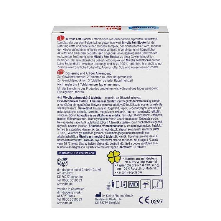 قرص گیاهی لاغری و چربی سوز Mivolis محصولی از برند معتبر میولیس است که خاصیت مسدود کنندگی چربی ها را دارد و به کاهش یا کنترل وزن بسیار کمک خواهد کرد. قرص فت بلوکر میولیس کاملا گیاهی بوده و حاوی کاکتوس گلابی خاردار می باشد و بدون کوچکترین عوارض به لاغری و رسیدن به وزن دلخواه شما کمک خواهد کرد. همچنین این قرص به سرعت می تواند به کاهش چربی های دور شکم و رسیدن به تناسب اندام کمک شایانی کند. قرص فت بلوکر با ترکیب شدن در رژیم غذایی شما منجر به چربی سوزی و چربی زدایی طبیعی از بدن خواهد شد. همچنین در قرص گیاهی Fat Blocker میولیس هیچگونه ماده ی افزودنی مانند رنگ های مصنوعی، مواد نگهدارنده، طعم دهنده و نمک به کار نرفته و 100 درصد طبیعی می باشد. قرص فت بلوکر میولیس احساس سیری را طولانی می کند و با کاهش هوس غذایی و جلوگیری از ذخیره چربی ها و تشکیل چربی های جدید به کاهش وزن و تناسب اندام می پردازد. همچنین این قرص برای مصرف طولانی مدت مناسب می باشد.
