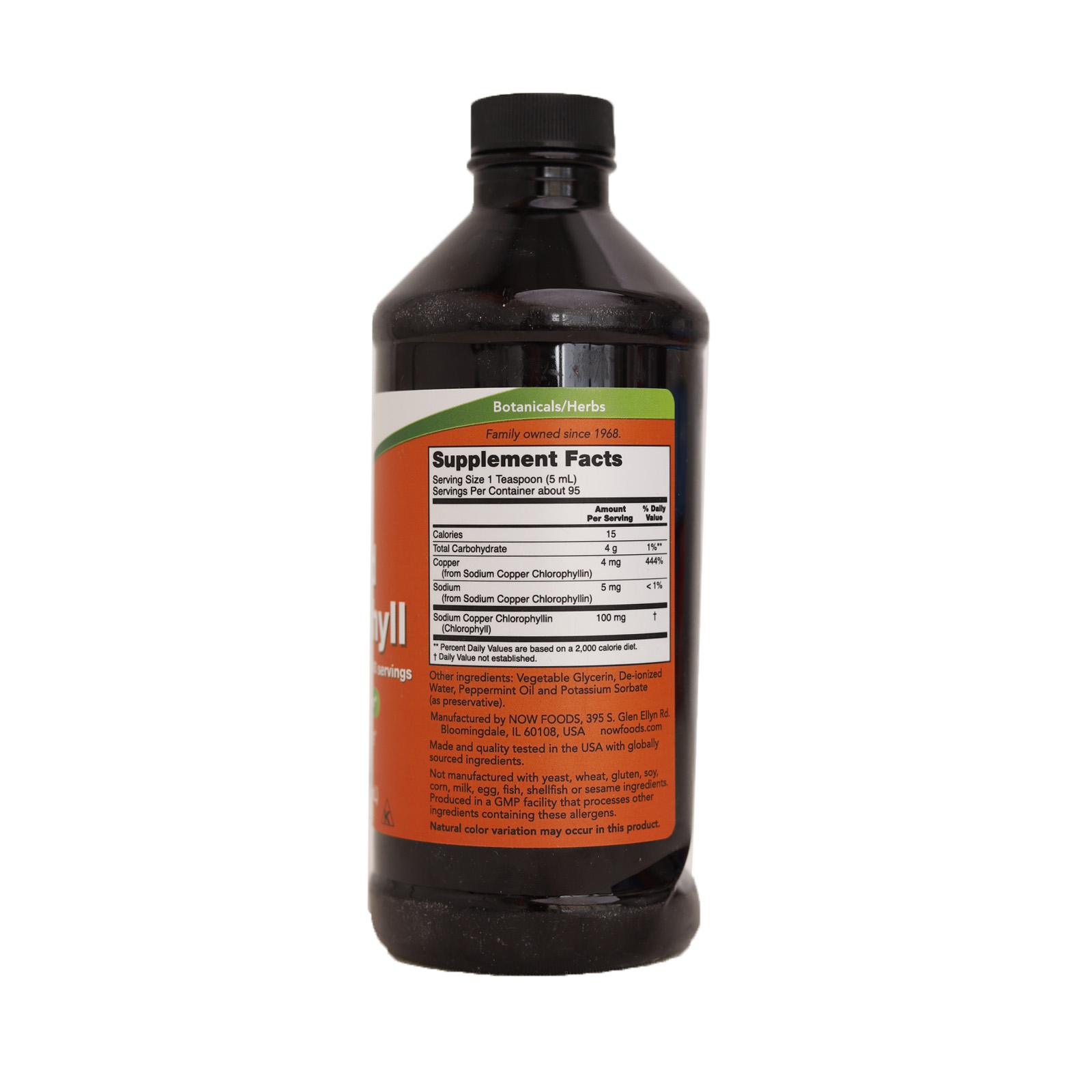 مایع کلروفیل ناو 473 میل NOW Chlorophyll Liquid نفس را تازه می کند و به پاکسازی بدن کمک می کند. کلروفیل یک رنگدانه سبز است که به طور طبیعی توسط گیاهان و جلبک ها تولید می شود و به آنها رنگ سبز می دهد. کلروفیل برای فتوسنتز، فرآیندی که در آن نور خورشید به انرژی شیمیایی تبدیل میشود، حیاتی است. کلروفیل می تواند به عنوان خنثی کننده رادیکال های آزاد عمل کند، ممکن است به حمایت از فرآیندهای سم زدایی بدن کمک کند و به طور سنتی به عنوان یک خوشبو کننده داخلی استفاده می شود. این عصاره محلول در آب به شکل کلروفیلین مس سدیم است.